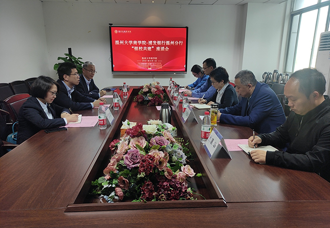 University-enterprise cooperation: Ren Jiandong, Director of Wenzhou Branch of Shanghai Pudong Development Bank visited Business School ​On the morning of April 1, Ren Jiandong, the director of Wenzhou Branch, Shanghai Pudong Development Bank and his colleagues visited Business School seeking for university-enterprise cooperation. Zheng Cailian, secretary of the party committee of the School, warmly received them and presided over the meeting. Hu Zhenhua, the dean, Yu Xiangqian, the deputy dean, etc. also participated in the d...
