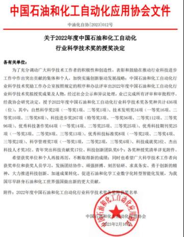 Feng Ziming& Teachers from College of Mechanical & Electrical Engineering Won Science and Technology Invention Award in Petroleum and Chemical Industry Recently, China National Association for Automation in Petroleum and Chemical Industry announced the winners for the 2022 China Petroleum and Chemical Automation Industry Science and Technology Awards. The project of "Optimization and Energy-saving Technology for Rod-pumped Wells and Its Scale Application", completed by Professor Feng Ziming, Professor Xiang Jiawei, and Associate Professor Huan...