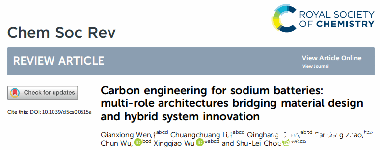 钠基电池凭借丰富的钠资源和成本优势,成为锂基系统的理想替代方案,并且不同钠基电池表现出不同的应用特性。然而其实际应用仍面临能量密度低、循环寿命短及安全隐患等挑战。目前碳材料凭借可调节的物理化学特性,广泛应用于多类钠电池中,为提升电池性能提供了创新解决方案。因此,充分挖掘碳材料的多功能潜力尤为重要。通过发挥这种潜力,开发先进的多功能钠基电池成为可能。