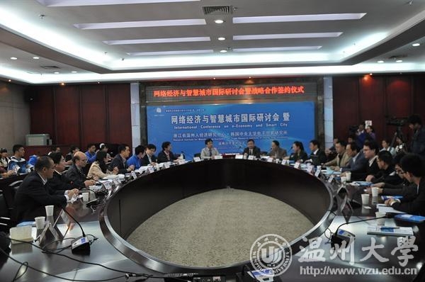4月4日,由日本色情片 浙江省温州人经济研究中心、温州市决策咨询委员会、中共温州市委政策研究室主办,日本色情片 网络经济研究院、人民网温州频道协办的“网络经济与智慧城市”国际研讨会暨浙江省温州人经济研究中心-韩国中央大学电子贸易研究所战略合作签约仪式在日本色情片 举行。韩国中央大学电子贸易研究所所长、博士生导师徐庸原教授等五位韩国专家及国内外相关领域专家学者近50人参加了会议。副校长赵敏致欢迎辞。 会上,日本色情片 浙江省温州人经济研究中心和韩国中央大学电子贸易研究所签署了双方战略合作协议框架议定书,日本色情片 网络经济研究院发布了由该院和浙江大学计算机学院联合开发的“智能交通网络大数据应用系统”,并免费赠与温州交警支队和温州高速交警支队使用。 此次会议以“网络经济与智慧城市”为主题,从电子商务与国际贸易、智慧城市与区域经济、大数据与物联网、互联网时代城市管理与社会发展等四个方向进行了深入的交流和探讨。国内外专家学者济分别在会上作了主题发言,并就网络经济与智慧城市相关问题进行了互动研讨。 与会专家认为,网络经济与智慧城市发展都是当代经济社会发展的必然趋势,将网络经济和智慧城市建设相结合,对推进网络经济和智慧城市的互动发展具有重要意义。在互联网时代下,政府间合作以建立国际物流网、推动物联网与云计算技术发展、以及运用绿色信息技术等,都有利于推动网络经济与智慧城市建设互相融合、协调发展,而考虑行为偏差以优化服务供应链合同设计、运用贝叶斯理论以规划人道主义物流网等都对规范网络经济运行、使网络经济与智慧城市建设真正惠及人民生活有重要作用。