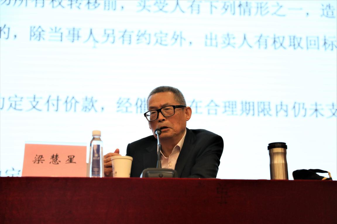 本次讲座采用现场问答的方式进行,针对法学院师生提出的《民法典》解释与适用中的十个重点问题,梁慧星教授现场予以即兴解答。这十个问题包括“超级优先权”、强制缔约、债权转让的对外效力、无权处分合同的效力、借款合同的利息、保理合同、精神损害赔偿、遗产管理人、公平责任、情势变更原则等。梁慧星教授详细阐释了《民法典》相关条款的具体内涵、制度渊源、立法变迁与立法目的,并就制度设计、解释与适用中的争议表达了个人见解。梁慧星教授对卷帙浩繁的民法条文的精准把握、对博大精深的民法学理的精彩阐释,无不引得现场观众敬佩赞叹,掌声不断。