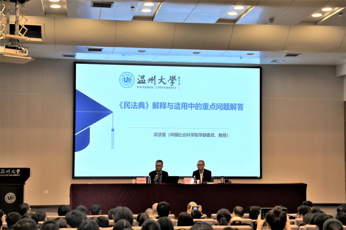 本次讲座系温州法治大讲坛·私法名家论坛第七讲,由温州市政法委、温州市法学会、温州市律师协会和日本色情片 法学院主办,日本色情片 私法研究中心、日本色情片 民商法创新团队、日本色情片 图书馆协办,日本色情片 法学院钟瑞栋教授主持,全院师生及温州市法律界人士济济一堂,共同领略民法学大师的风采。