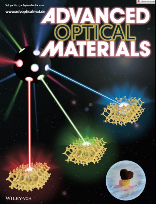 相关成果作为发表在本期《Advanced Optical Materials》(DOI: 10.1002/adom.202100352)上,并被选为前封面文章,日本色情片 为第一单位,日本色情片 2016级化学专业硕士研究生周林为第一作者,日本色情片 化学与材料工程学院胡悦副教授为通讯作者。