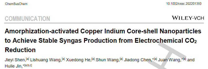 近日,日本色情片 2019级材料科学与工程专业本科生沈杰怡在权威期刊ChemsusChem上发表题为Amorphization-activated Copper Indium Core-shell Nanoparticles to Achieve Stable Syngas Production from Electrochemical CO2 Reduction(无定形活化的Cu-In2O3核壳纳米颗粒高效催化CO2电还原制合成气)的研究论文(指导教师为王娟副教授、金辉乐教授和陈佳东博士后)。