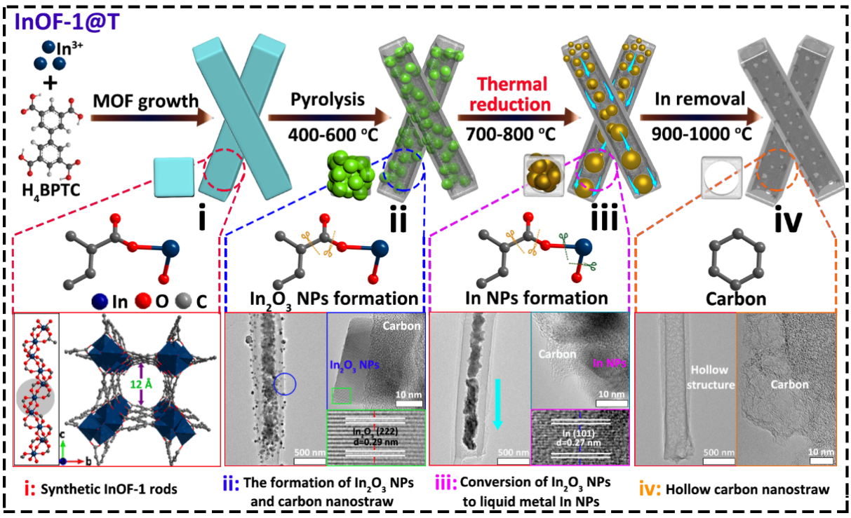 碳纳米管(CNTs)具有独特的中空管状结构,可以作为一种微反应容器,将小分子活性物种限制在其管道中进行电化学性能反应。然而致密的管壁和细长的管径结构在很大程度上束缚了内部活性物质和电解液离子的有效扩散和电子传输。因此开发多孔的中空碳纳米材料成为提高新型金属二次电池的亟需材料。