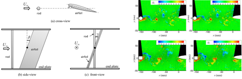 论文①研究了不同截面形状柱体、不同翼型来流攻角α、后掠角β、以及偏转角γ对柱翼涡-固干扰流场涡结构及其噪声特性的影响。通过近场噪声源定位,远场传声器阵列确定噪声及其辐射特性,PIV可视化流动分析噪声机制。该项研究评估了多种参数对涡-固干扰过程的影响,对航空飞行器和民用设备低噪声设计具有重要价值。论文第一作者兼通讯为李勇教授,硕士生牛晓飞(现中山大学航空航天学院在读博士生)为第二作者,研究工作得到了国家自然科学基金项目资助。