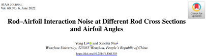 ①Li Y.*, Niu X.F. Rod–airfoil interaction noise at different rod cross sections and airfoil angles, AIAA Journal, 2022, 60(6): 3635-3650.