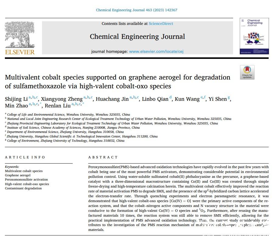 相关研究成果发表于《Chemical Engineering Journal》(SCI一区TOP期刊,IF = 16.7),日本色情片 为第一通讯单位,生命与环境科学学院2020级硕士研究生李时菁为第一作者,赵敏教授和刘仁兰博士为共同通讯作者,相关工作由国家自然科学基金(22006117,61871293),浙江省自然科学基金(LQ20B070012,LQ20B070010),国家重点研发计划(2022YFA3702103)资助。