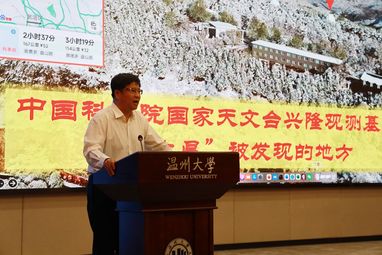 薛随建介绍了“温大星”的发现和命名过程,讲解并展示了“温大星”在宇宙中的位置及运行轨道。中国科学院国家天文台施密特CCD小行星项目组于1996年10月3日发现的小行星1996TA6,获得国际永久编号第363018号,经国际天文学联合会小天体命名委员会批准,正式命名为“温大星”。