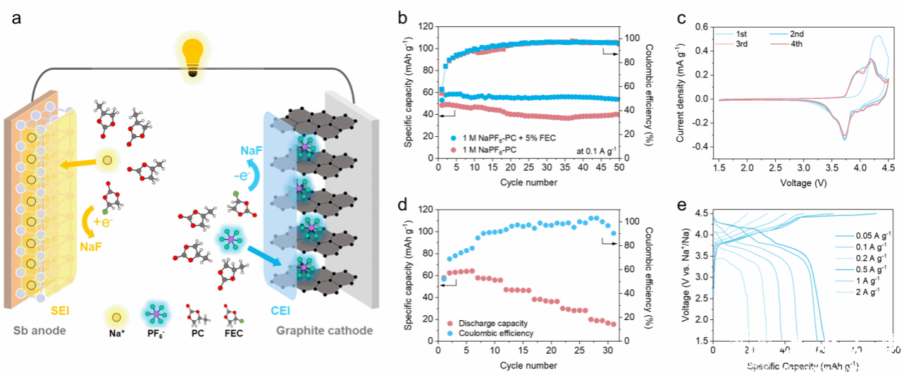 图1. Sb||石墨全电池的电化学性能