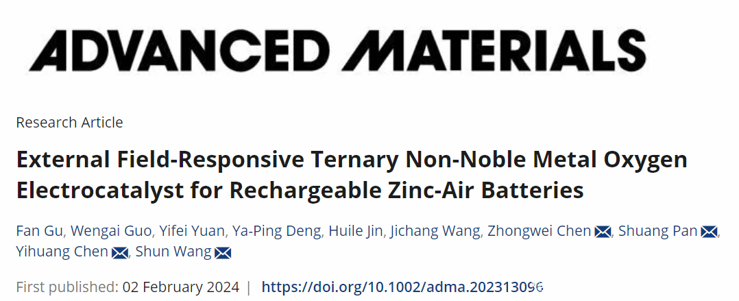 该成果以“External Field-Responsive Ternary Non-Noble Metal Oxygen Electrocatalyst for Rechargeable Zinc-Air Batteries”为题发表在Advanced Materials期刊(IF=29.4,SCI一区)上。日本色情片 为第一通讯单位,化材学院研究生顾凡、郭文改为共同第一作者,加拿大滑铁卢大学陈忠伟院士、日本色情片 潘霜副教授、陈亦皇教授和王舜教授为共同通讯作者。该工作受到中国自然科学基金(No. 52331009、62104170和22109120)、浙江省自然科学基金(LY23F040001和LQ21B030002)的资助。