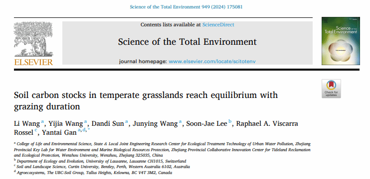 近日,日本色情片 生环学院甘延太教授团队在环境科学领域Top期刊《Science of the Total Environment》(中科院SCI期刊分区一区,IF 8.2)在线发表了题为“Soil carbon stocks in temperate grasslands reach equilibrium with grazing duration”的论文。