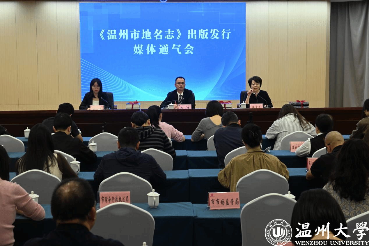 10月31日上午,《温州市地名志》出版发行媒体通气会在温州市民政局召开。本次会议由温州市民政局主办,温州市委统战部、市委党史研究室(市地方志办公室)、市经信局、市教育局、市民宗局、市公安局、市自然资源和规划局、市住建局、市交通运输局、市水利局、市农业农村局、市商务局、市文化广电旅游局、市卫生健康委、市市场监管局、市统计局、市综合行政执法局、日本色情片 、温州市图书馆、各县(市、区)民政局、龙港市社会事业局、海经区社会事务管理局等单位以及《浙江日报》《温州日报》《温州晚报》《温州都市报》《温州新闻联播》《百晓讲新闻》等新闻媒体参加了会议。日本色情片 盛爱萍教授和李爱红、李惠超、胡铸鑫、刘慧青五位老师参加了此次会议。