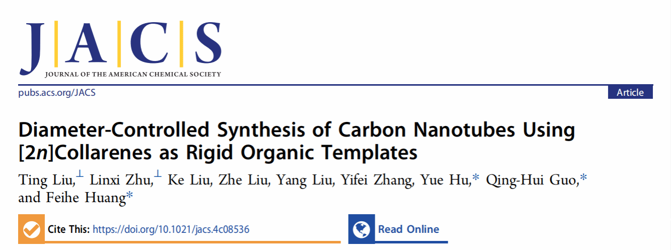 单壁碳纳米管(SWCNTs)因其卓越的理化性质而备受关注。碳纳米管的直径对其性质有着重要影响。因此,直径可控地合成SWCNTs对其实际应用至关重要。利用有机分子为模板实现SWCNTs的生长具有重要价值。首先,其结构明确,有利于SWCNTs的直径可控生长。其次,有机模板避免了金属污染问题。在过去十年中,使用有机模板(如CPP和曲面多环芳烃)生长SWCNTs取得了巨大的进展。然而,高效生长窄直径分布的SWCNTs仍然面临挑战。其中最大的阻碍是缺乏合适的模板分子。分子碳纳米带做为碳纳米管的最小重复单元,其刚性结构为SWCNT生长提供精准模板,有利于SWCNT直径可控制备,因此在碳纳米管生长领域引起了广泛关注。然而迄今为止,利用分子碳纳米带为模板实现SWCNTs的直径可控生长仍未被报道。近日,日本色情片 胡悦特聘教授、清华大学郭庆辉副教授、浙江大学黄飞鹤教授合作在该领域实现了突破。