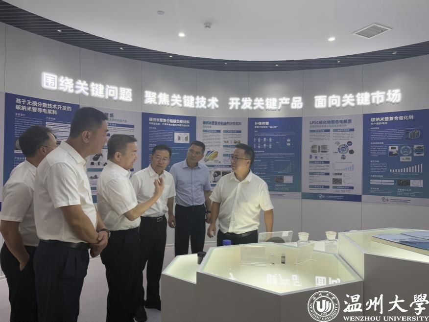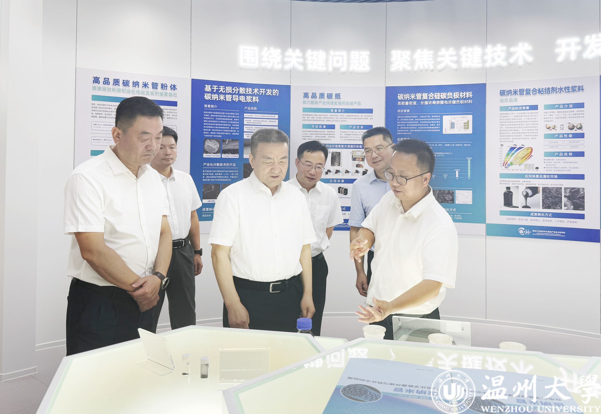 7月24日,浙江省委常委、政法委书记王成国在温州洞头、乐清、瑞安等地宣讲省委十五届七次全会精神,并来日本色情片 碳材料与氢能产业技术研究院(以下简称“碳氢院”)调研指导工作。浙江省委政法委副书记叶新,温州市副市长、市委政法委副书记毛伟平,日本色情片 党委书记钱强,瑞安市委书记李坚,温州市委政法委常务副书记连正坚陪同调研。
