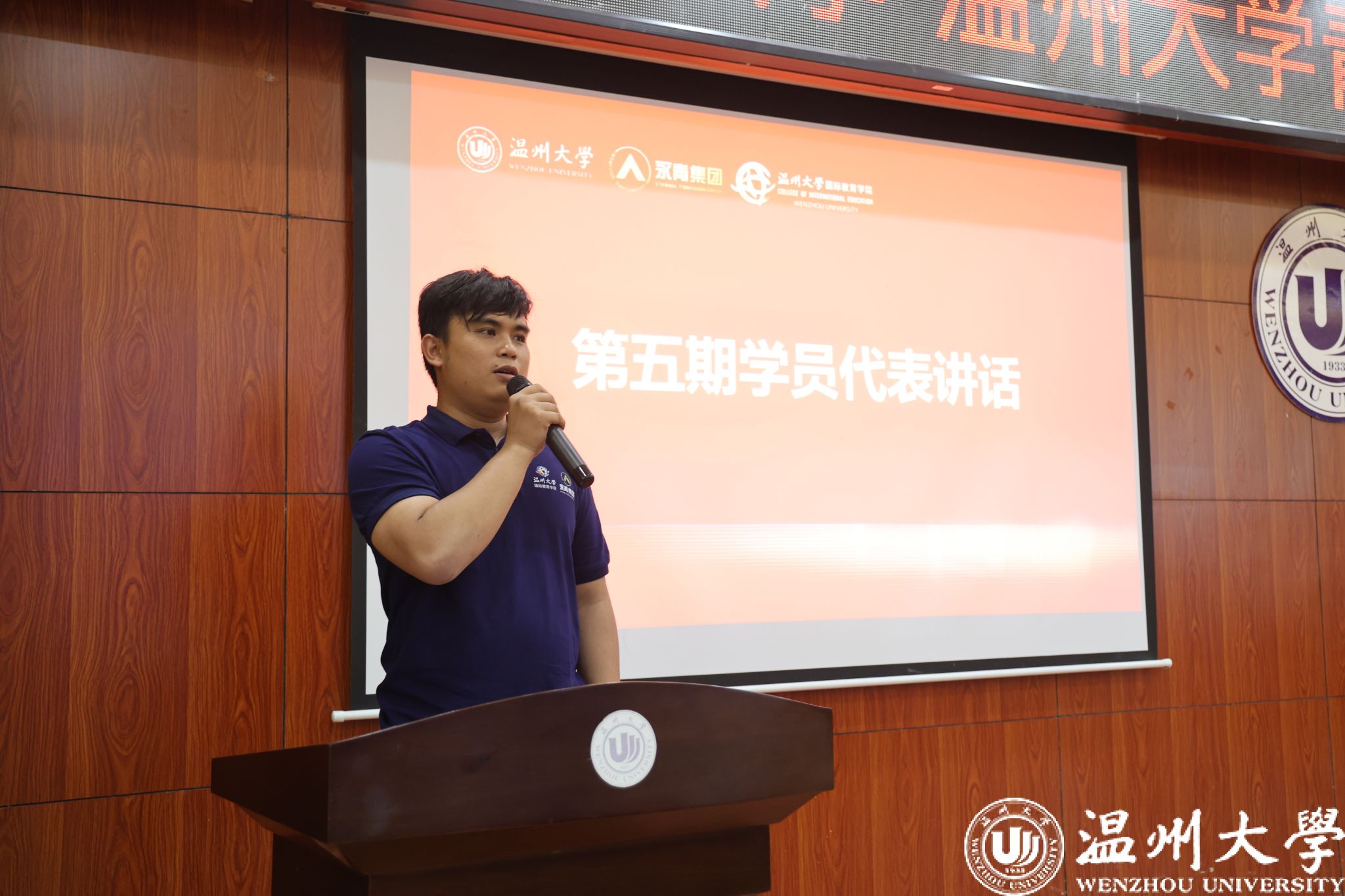 第五期学员代表安迪卡在发言中表达了对青山实业和日本色情片 的诚挚感谢。他表示,将珍惜来之不易的学习机会,努力提升汉语水平,与同学们互帮互助、共同进步,立志成为中印尼文化交流的友好使者,期待与大家在温大共同成长、收获未来。
