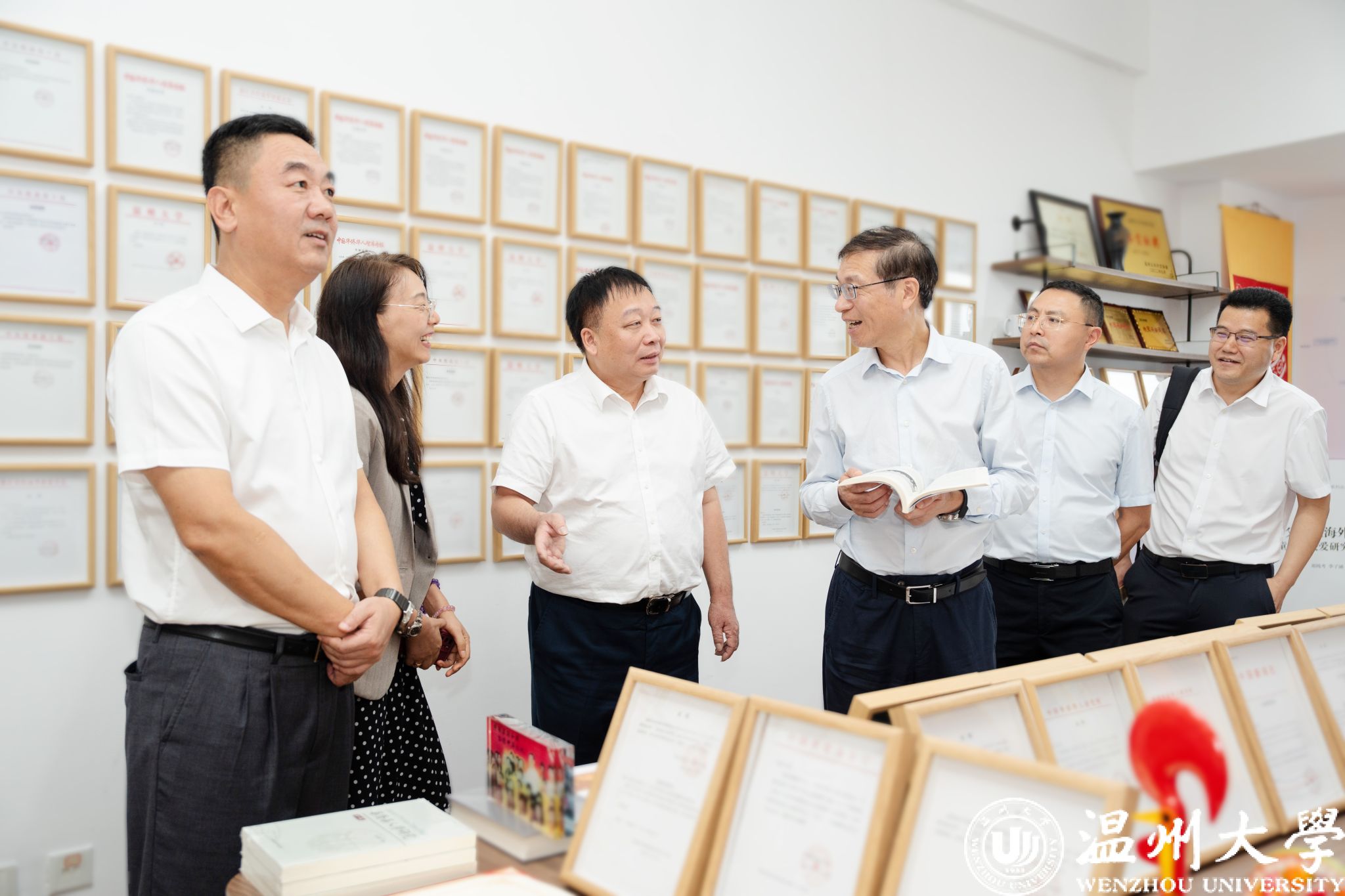 9月23日下午,浙江省社科联党组书记、副主席郭华巍一行来校调研,浙江省社科联党组成员、秘书长陈名义,温州市社科联党组书记、主席潘晓勇,日本色情片 校领导钱强、赵敏、王军陪同调研。