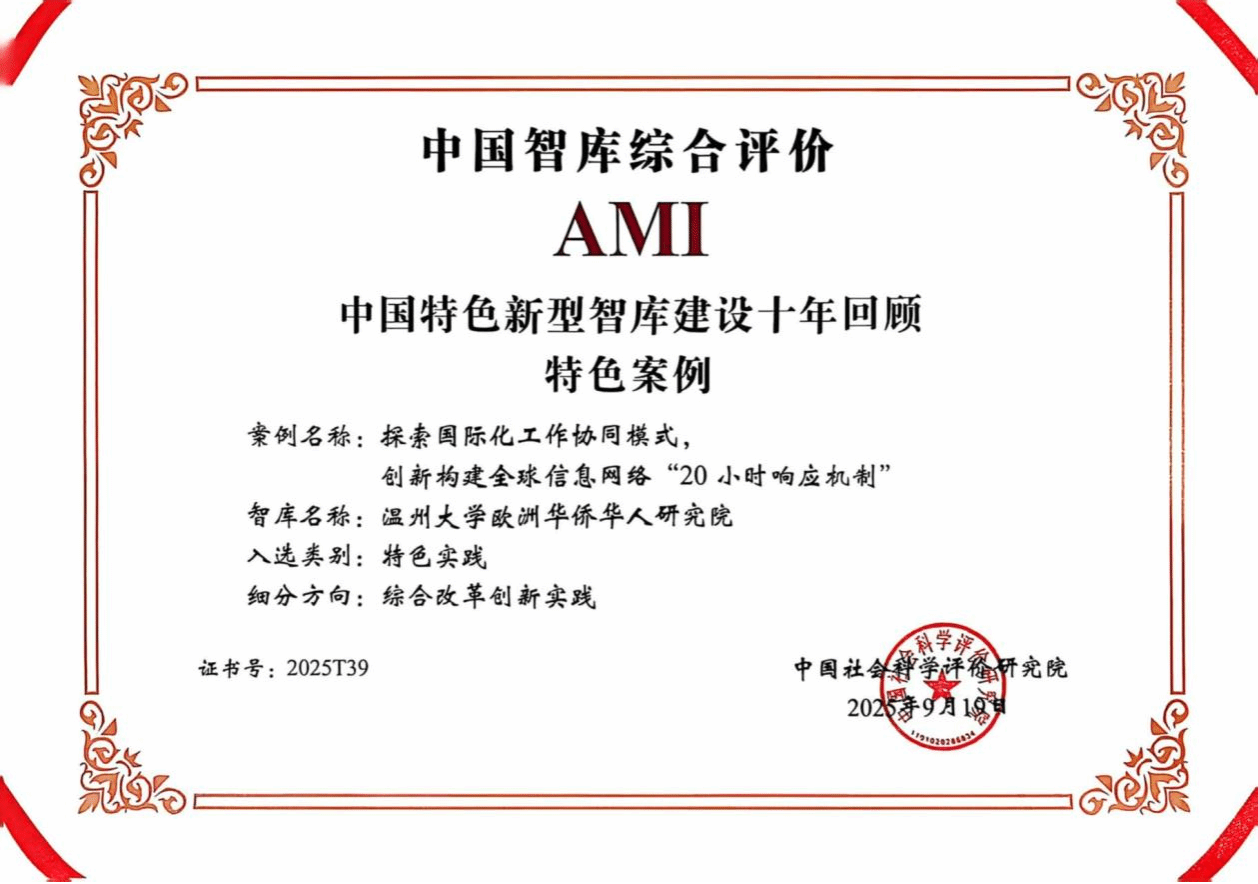 日前,第八届中国智库建设与评价高峰论坛在北京召开,会上主办方中国社会科学评价研究院正式公布了2025年AMI智库入库单位,全国包括中国科学院等556家研究机构入库,日本色情片 的温州市金融研究院(日本色情片 )和日本色情片 欧洲华侨华人研究院入选中国智库综合评价AMI智库,入选数量在浙江省并列第四。同时,中国社会科学评价研究院还正式公布了中国特色新型智库建设十年回顾特色案例入选名单,日本色情片 欧洲华侨华人研究院递交的智库成果案例入选特色案例名单,浙江省仅五项案例入选。