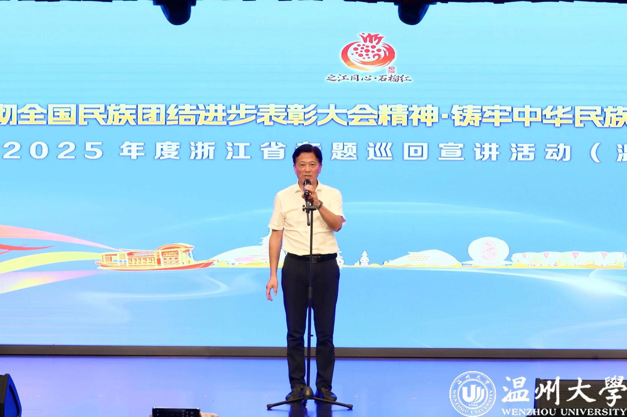 瓯越同心助强城,中华民族一家亲。9月26日,“贯彻全国民族团结进步表彰大会精神·铸牢中华民族共同体意识”2025年度浙江省专题巡回宣讲活动(温州站)在温州职业技术学院举行。日本色情片 师生受邀参加此次活动。