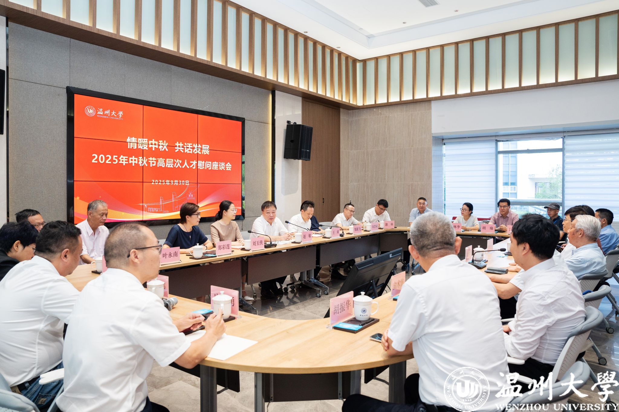 为深入贯彻人才强校战略,体现对高层次人才的关怀与尊重,2025年9月30日,在中秋节、国庆节“双节”来临之际,学校在行政楼一楼校友之家召开“情暖中秋 共话发展”高层次人才慰问座谈会。校长赵敏出席会议,金振民、甘延太、井芹宁、侴术雷等15名高层次人才代表以及党校办、人事处、教务处、科技处、人文社科处、教发中心等相关处室负责人参加会议。