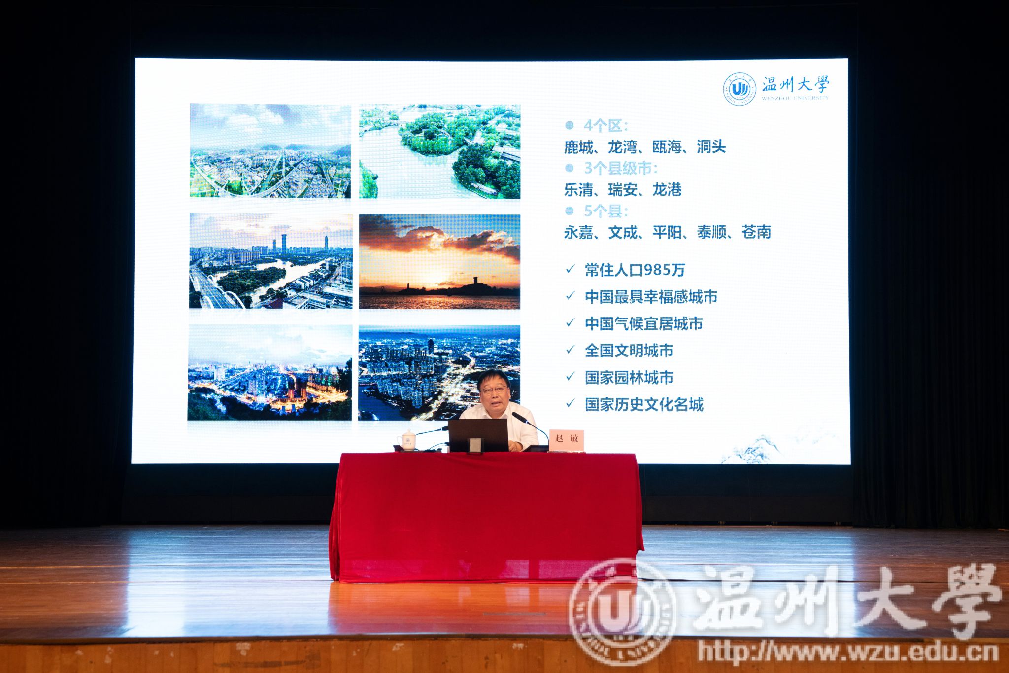 赵校长首先介绍了温州作为国家历史文化名城、民营经济重要发祥地与青年发展型城市的独特魅力。他指出,温州“千年文脉”的历史积淀、“商行天下”的创业精神与“重才爱才”的城市基因,为温大学子的成长提供了丰厚滋养和广阔舞台,鼓励同学们“多走出茶山看一看”,在真实的社会课堂中增见识、长才干。