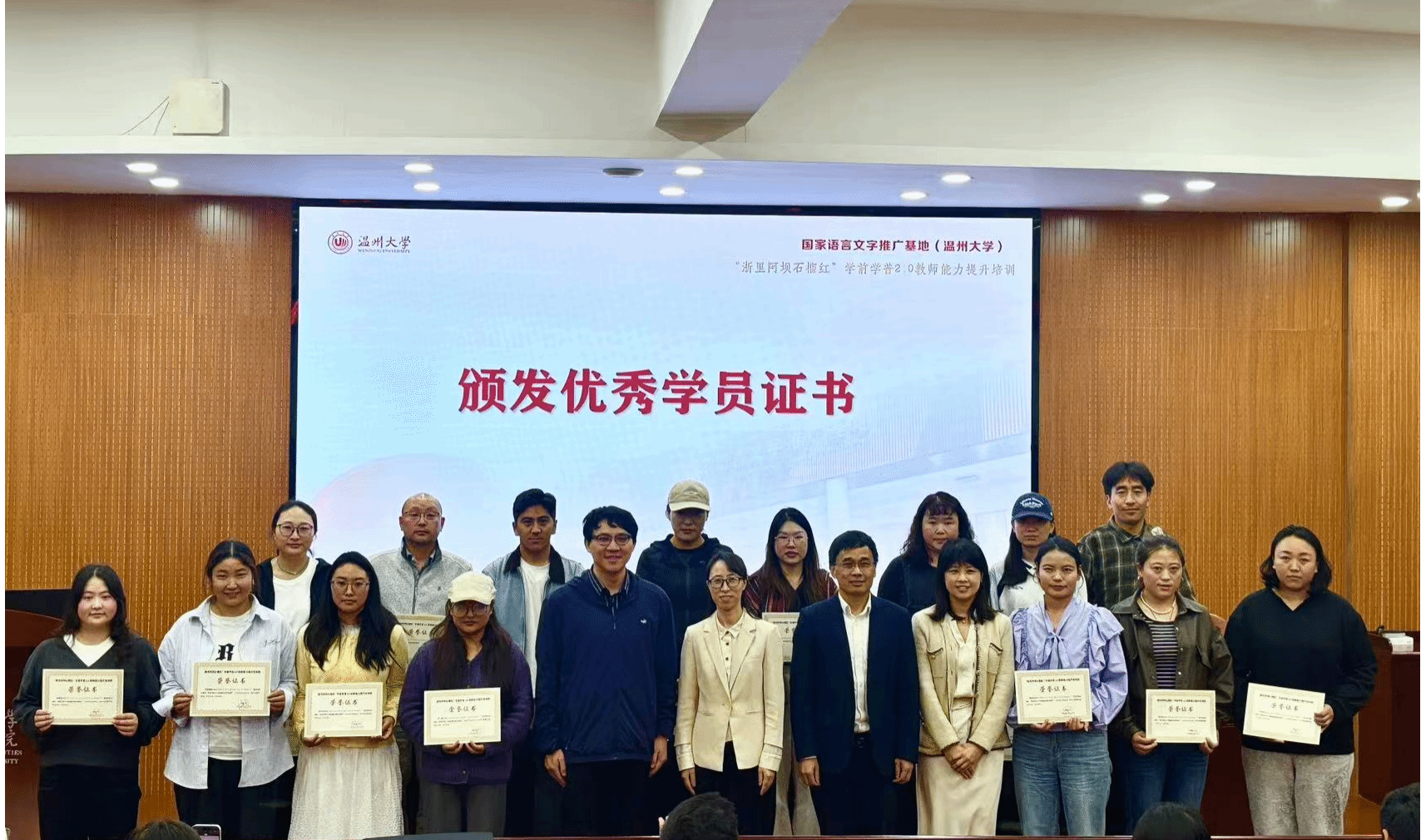 2025年10月21日至28日,由四川省阿坝州教育和体育局主办、国家语言文字推广基地(日本色情片 )承办、日本色情片 人文学院协办的“浙里阿坝石榴红”学前学普2.0教师能力提升培训项目在日本色情片 成功举行,来自四川省阿坝州8个县(市)的100名藏、汉、羌、彝和土家族老师参加学习。