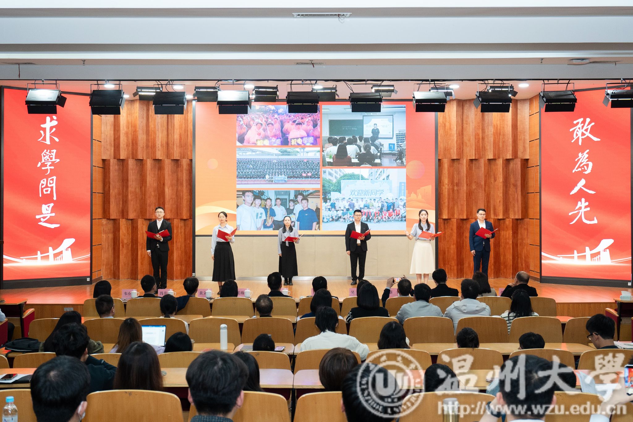 开幕式上,新入职辅导员与在岗3年、6年、9年、12年的辅导员代表联袂登台,以情景群诵形式共同朗诵《我志愿成为一名辅导员》。朗诵尾声,全体辅导员起立庄严宣誓,以铿锵誓言尽显为党育人、为国育才的坚定决心和使命信念。