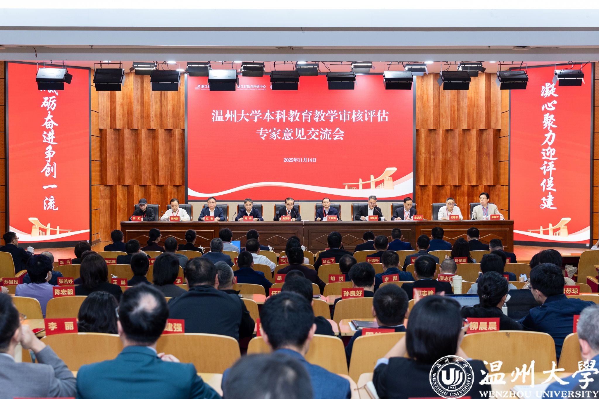 赵敏校长代表学校作表态发言。他指出,专家们通过深入课堂、走访座谈、考查场馆、审阅材料等方式,对学校进行了一次全方位、全链条、系统化、高水平的“全面体检”和“把脉会诊”,所提出的问题精准深刻、建议切实可行,学校完全赞同、诚恳接受、全面吸纳。他强调,学校将以此次评估为契机,坚决抓好整改落实,立即成立评估整改工作领导小组,建立问题、任务、责任“三张清单”,实行台账管理、严格要求、限时整改,确保每条意见落地见效。学校将把评估整改与做好“十五五”规划编制、新一轮教育改革深化以及中长期发展战略紧密结合,进一步强化本科教学中心地位,落实立德树人根本任务,不断健全完善教育教学质量保障长效机制,持续营造人人关心教学、人人支持教学、人人奉献教学的良好氛围,努力培养更多德智体美劳全面发展的社会主义建设者和接班人,为浙江建设“教育强省”、国家建设“教育强国”交出温大“高分答卷”。
