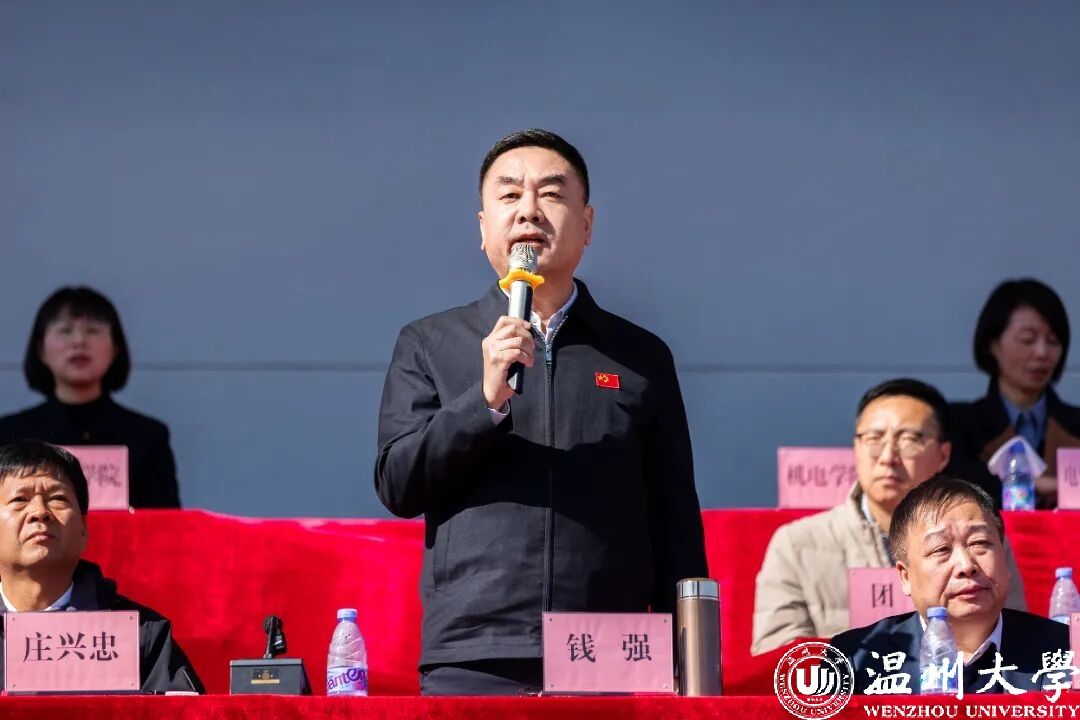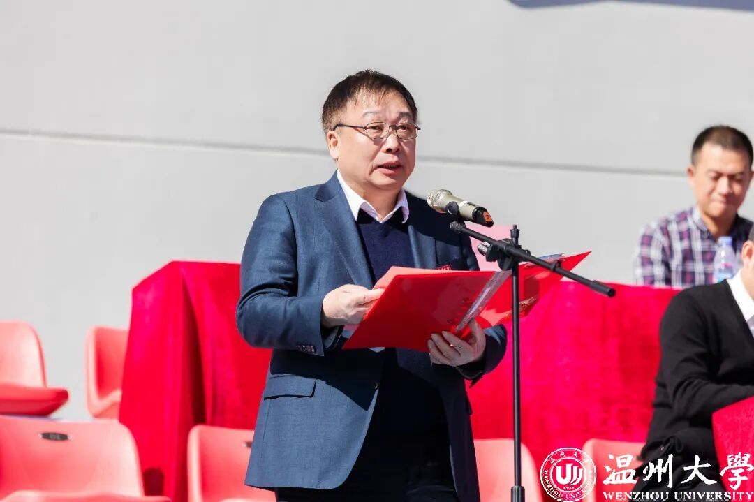 校长赵敏致闭幕辞。赵校长向取得优异成绩的团体和个人表示热烈的祝贺,并向为运动会成功举办做出贡献的各工作人员表达了诚挚的感谢。他指出,本届运动会的参赛者们诠释了“更快、更高、更强、更团结”的奥林匹克精神,不仅赛出了风格,赛出了水平,更用行动完美诠释了“敢为人先”的温大精神。在这次运动会中,许许多多的老师同学走向操场,感受拼搏精神、体会奋进力量——全校师生心往一处想、劲往一处使,将赛场变成了增进友谊、促进交流的舞台,绘就了文明、和谐、团结、奋进的校园画卷。赵敏衷心希望全校师生将赛场上所激发出的热情和斗志,转化为今后学习、工作和生活的强大动力,把集体荣誉感和奋进动力,融入学校发展的洪流。在“十五五”规划蓝图已全面展开的当下,将赛场上“迎难而上”的闯劲、“百折不挠”的韧劲、“众志成城”的拼劲,熔铸成改革创新、提质增效的具体行动,以“早半拍”的敏锐、“快一步”的担当,跑出当代大学生的最好成绩,以更加饱满的热情和更加扎实的行动,为加快推进建设浙江省高水平大学、争创“双一流”高校奋斗目标作出新的更大贡献!