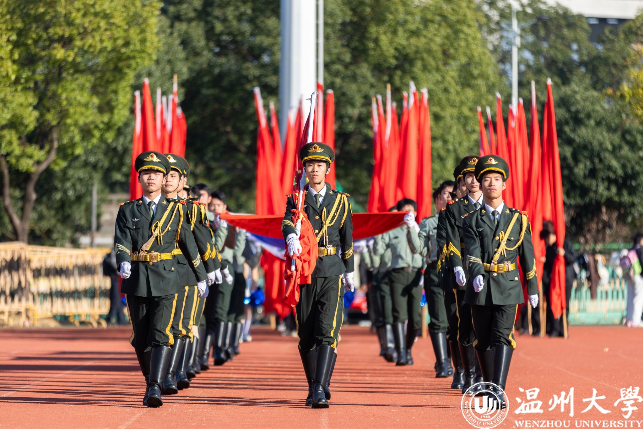 温大师生齐唱国歌,五星红旗冉冉升起。旗帜飘扬,激励着每一个人为着更高的荣誉、更远的目标而努力奋斗。