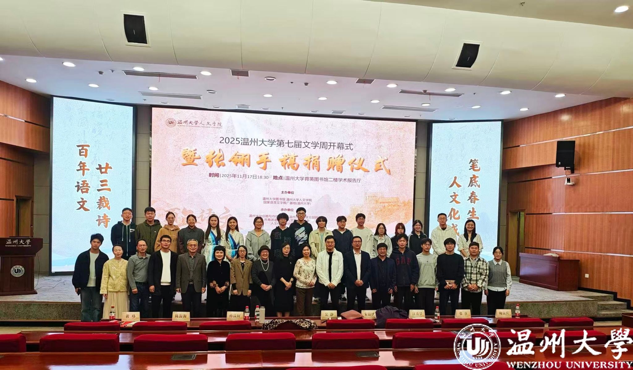 党委委员、宣传部部长、教师工作部部长吴静在致辞中从温州“东南小邹鲁”的文化底蕴谈起,肯定了人文学院在永嘉学派研究和文学新人培育上的深耕。她对张翎的手稿捐赠给予了高度评价,称之为“厚重的文化馈赠与精神托付”。她表示,学校将全力做好手稿的典藏与研究,让这份珍贵的创作成果成为滋养学子的精神财富。