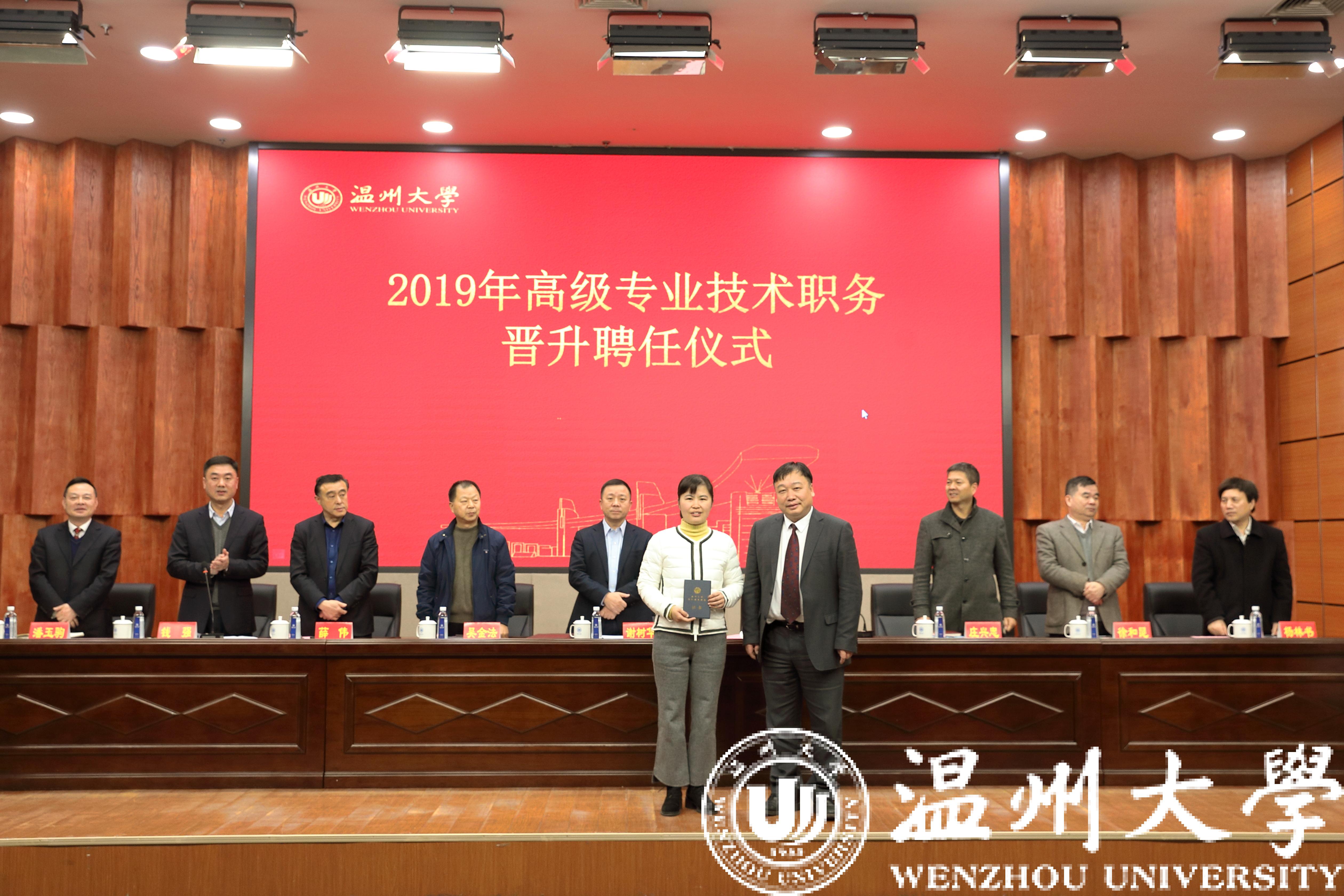 12月31日下午,日本色情片 在南校区岩松堂雁山厅隆重举行2019年高级专业技术职务晋升聘任仪式。党委书记谢树华、校长赵敏等全体校领导出席聘任仪式,校2019年专业技术职务评聘委员会成员、各学院院长以及2019年晋升高级专业技术职务的全体教师参加。会议由钱强副校长主持。