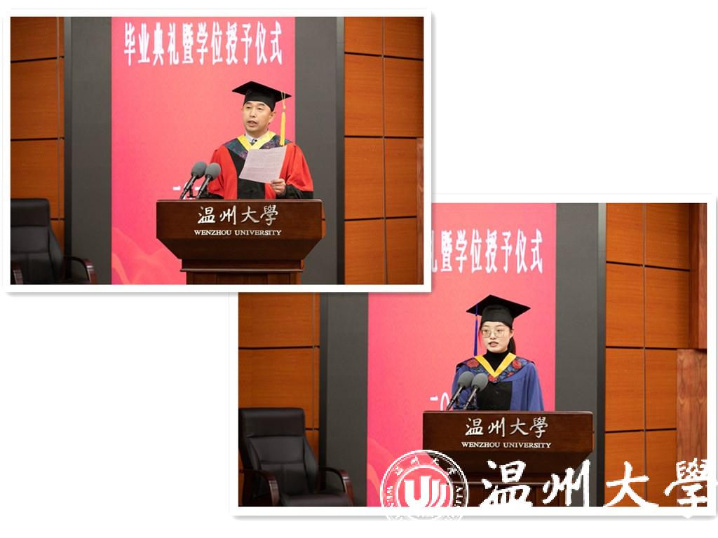 暖场视频把大家带回到最美的温大回忆中,回顾了在校生活和学习。巍巍屹立的教学楼、埋头做研究的实验室、每天上课的教室、伏案苦学的自习室、色香味俱全的食堂大锅饭、温馨与自然完美结合的天鹅湖,更有爱护、教导多年的导师和辅导员以及默默坚守岗位的校园服务人员,校园的每一个角落、视频的每一帧都会是毕业后难以忘却的美好!