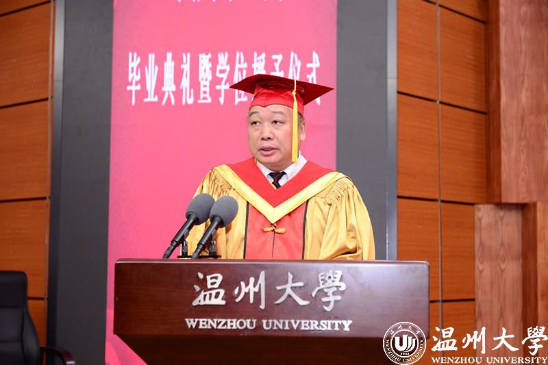 副校长薛伟教授宣读了校学位评定委员会授予蒋国荣等69人硕士学位的决定。学位授予仪式由各培养学院党委书记宣读毕业生名单,院长颁发毕业证书,校长颁发学位证书并拨流苏。
