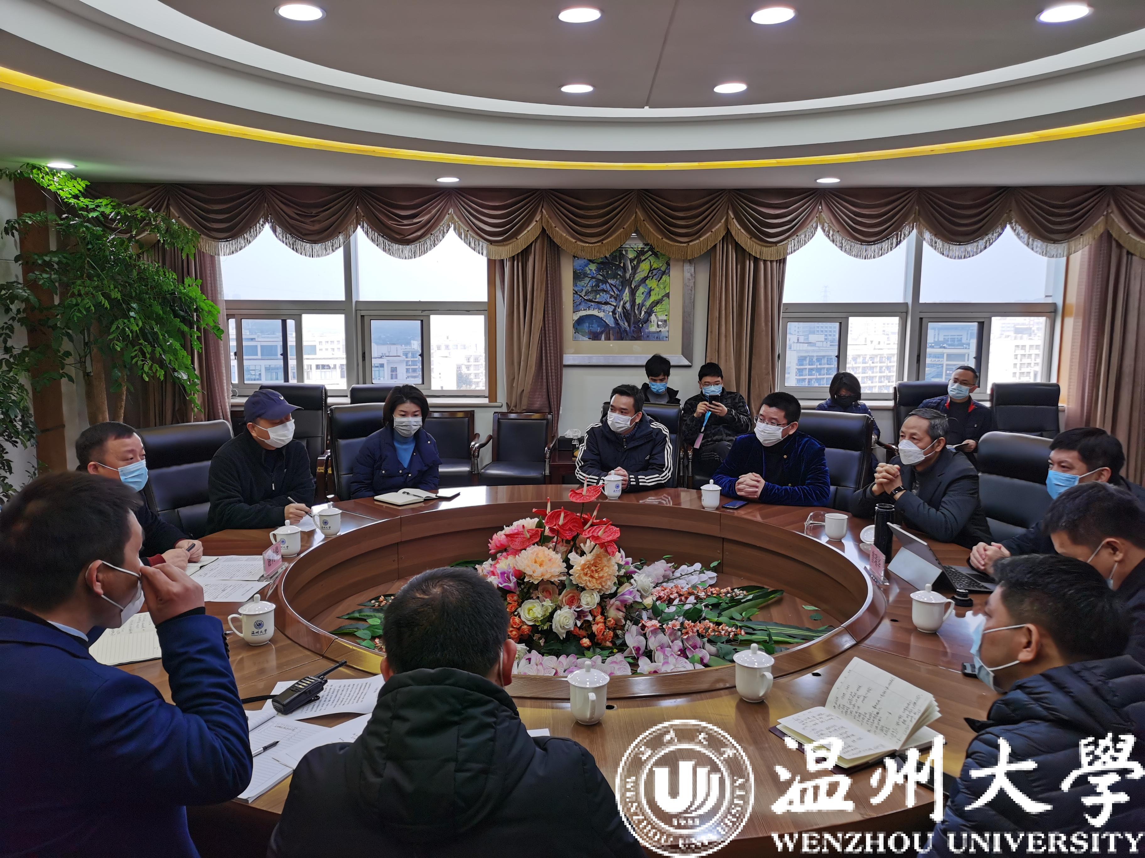 2月11日上午,瓯海区区长曾瑞华、瓯海区人大副主任胡明道、瓯海区副区长林照光等领导一行8人来校指导疫情防控工作,就加强校地联防联控、群防群控交流工作意见。校党委书记谢树华、副书记吴金法,学校相关部门负责人陪同调研指导。