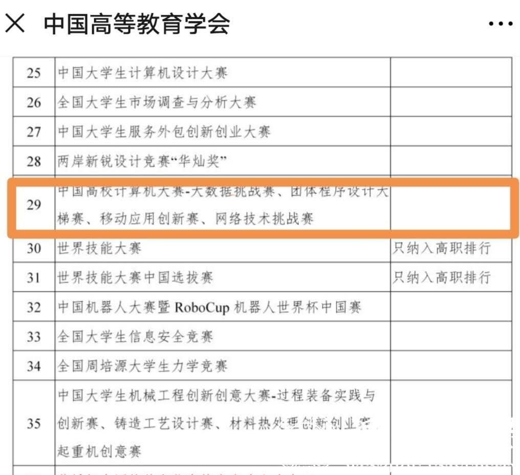 全国普通高校学科竞赛排行榜是中国高等教育学会“高校竞赛评估与管理体系研究”专家工作组研究成果,也是我国第一个专注高校创新人才培养成果的排行榜。该排行榜依据权威性、影响力和国际性原则每年遴选若干全国大学生竞赛项目入榜,从获奖贡献、组织贡献和研究贡献三个维度分别对全国普通本科院校和高职院校的学科竞赛竞争力进行排行。