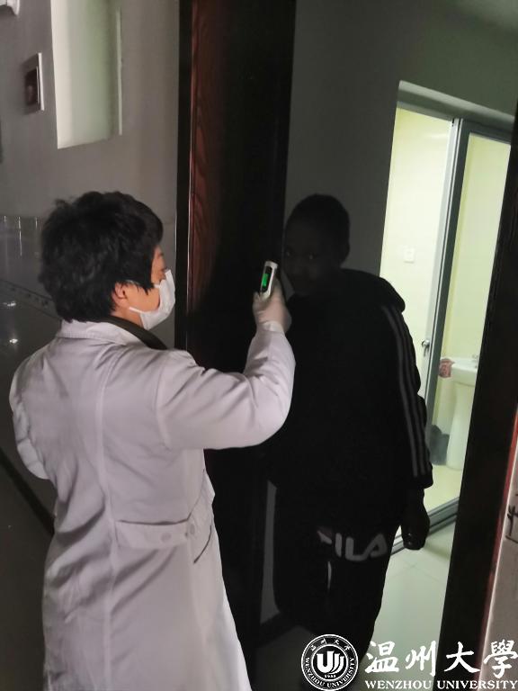 部分家住省外的校医务人员,因疫情管控暂时无法返岗,让医务室人手更显紧张,顾秀杰总是冲锋在前,带头承担起重活累活。集中在D区的三百多名留学生的健康管理,是医务室接到的重点工作任务之一,为确学生的健康安全,医务室要对所有留学生进行持续的体温监测和健康筛查,工作量很大。顾秀杰主动承担起这项繁重的工作,每天都亲自带领当班的医护人员,挨个寝室去给留学生测体温,询问记录每一位学生的健康情况,每一轮体温测下来都要两三个小时,非常辛苦,但她从不喊累,还坚持边测体温边给留学生们普及防疫常识。