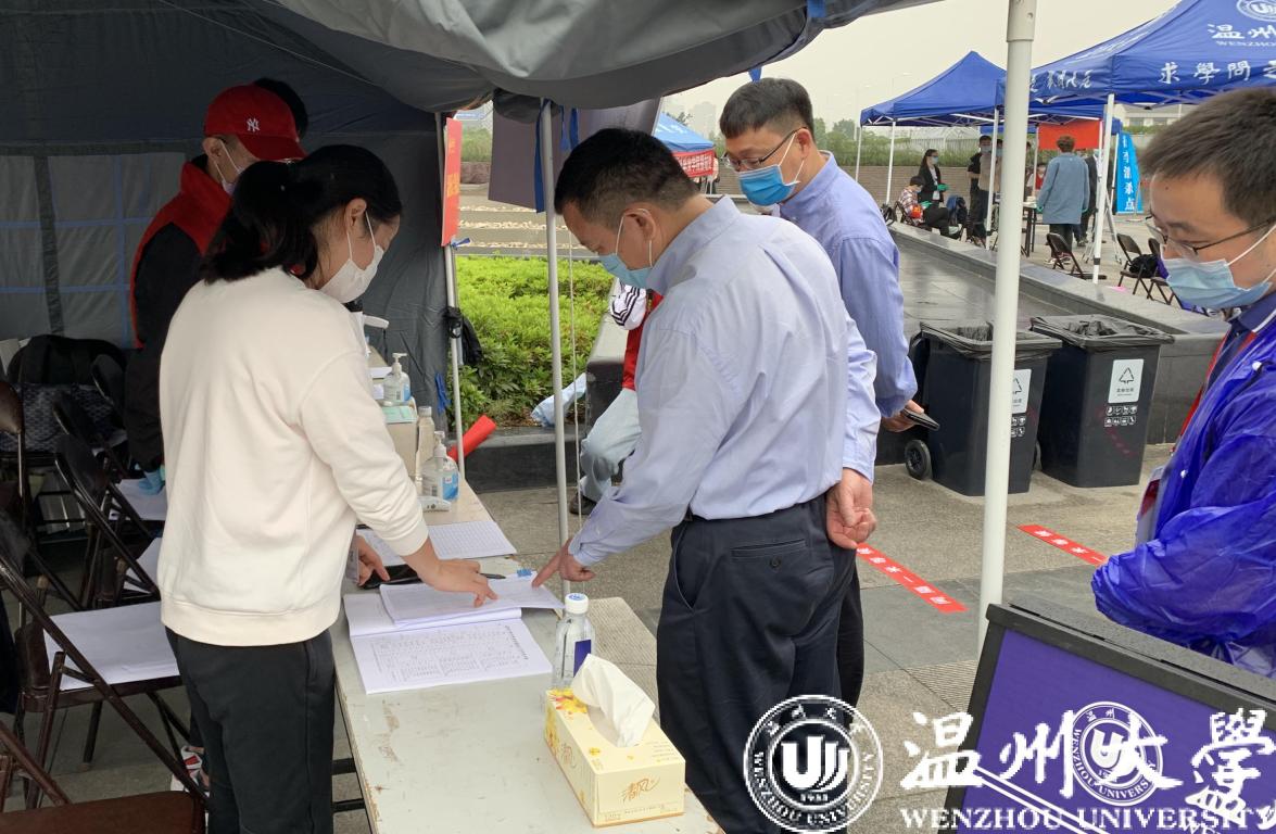 5月7日,校党委书记谢树华来到日本色情片 设在温州动车南站等处的接待点、消杀点和报到点,对报到和接站流程进行检查,并亲切慰问返校学生和接站工作人员。