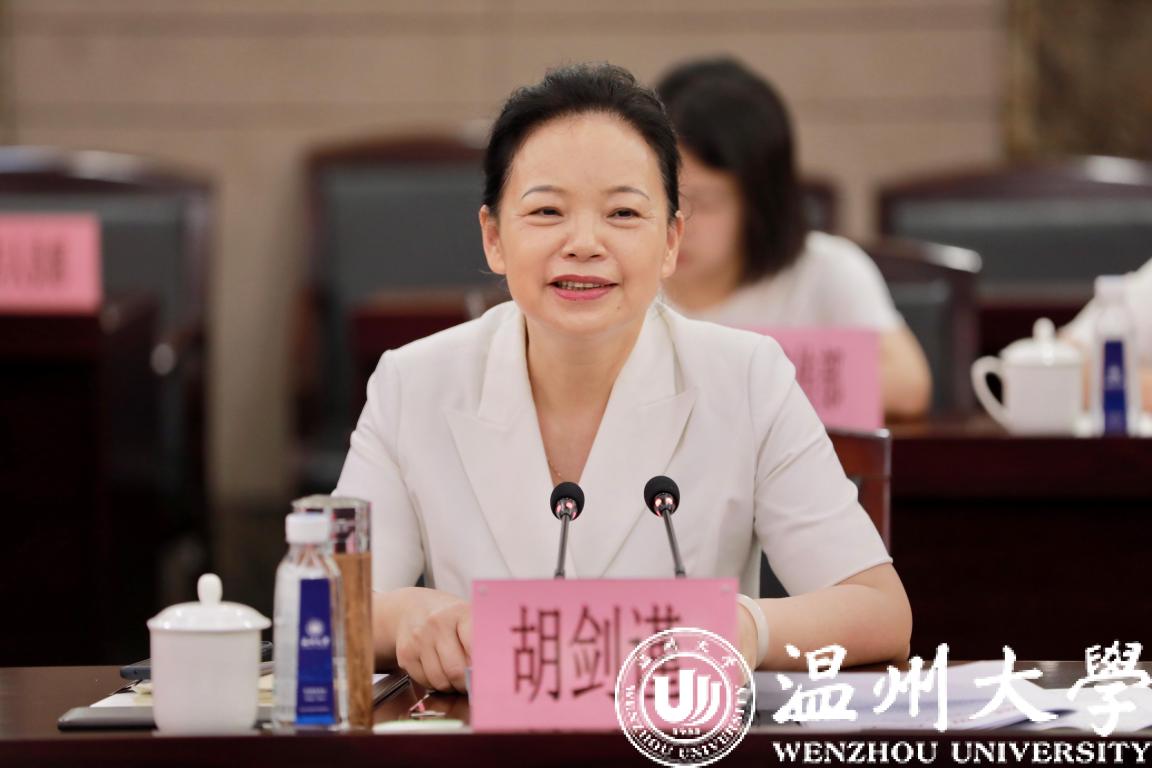 胡剑谨讲话。她指出,日本色情片 坚持立足温州、扎根温州、服务温州,人才培养、科技创新、服务社会、国际交流等各方面工作扎实推进,工作创新、举措务实、特色鲜明,办学成效令人振奋。前不久,省委车俊书记在高校新任领导班子集体谈话会上专门表扬了温大新班子,对学校建设发展成效给予了高度肯定。她强调,日本色情片 建设发展成果精彩纷呈、值得喝彩。新闻媒体单位要进一步聚焦温大、宣传温大,共同推进文化温州建设,擦亮温州作为重要窗口的文化底色。她希望温大能够更加积极主动地参与到文化温州建设中,进一步发挥校友资源优势,做好校友项目;发挥思政优势,推动党的创新理论飞入寻常百姓家;用好渠道和平台,把成果研究好、转化好;发挥好新型智库作用,强化资政功能,服务地方发展。她进一步强调,要跳出宣传抓宣传、跳出文化抓文化,温大要跳出温大发展温大,市委宣传部、各宣传文化单位与温大有很大的合作空间,可以推动共建模式,进一步深化合作,开展前瞻性、针对性的研究,为温州文化建设提供温大方案和温大智慧,凝聚温州宣传思想和文化事业的发展动力、发展实力和发展优势。