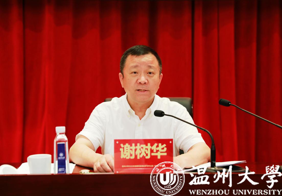 校党委书记谢树华作题为《锚定发展目标、深化治理改革、激发主体动能,在新起点上努力推进学校实现高质量发展》的重要讲话。谢树华传达了新任省委书记袁家军同志在省委党校秋季学期开学典礼上的重要讲话精神,以及省委常委、市委书记陈伟俊在全市教师节庆祝大会、温州高等教育发展座谈会和市委全会等会议上对高等教育提出的新要求及对高校干部提出的新希望。谢树华指出,一年来全校上下深度响应“一个定位明方向、三大目标聚人心、三项改革促发展、七大战略强内涵”的集结号,锚定目标奋勇拼搏,喜事连连捷报频传。学校在2019年度温州市直单位考绩中被评为市直高校院所“优秀单位”,名列全市第一,并获市委市政府专项工作特别奖;学校领导班子年度考核列全省30所本科高校第1名、学校综合绩效考核列全省30所本科高校第2名;在7月份全省高校新任领导班子成员集体谈话会上,省委原书记车俊同志对温大工作给予了充分肯定和高度赞赏,温大成为会上唯一受表扬的高校。