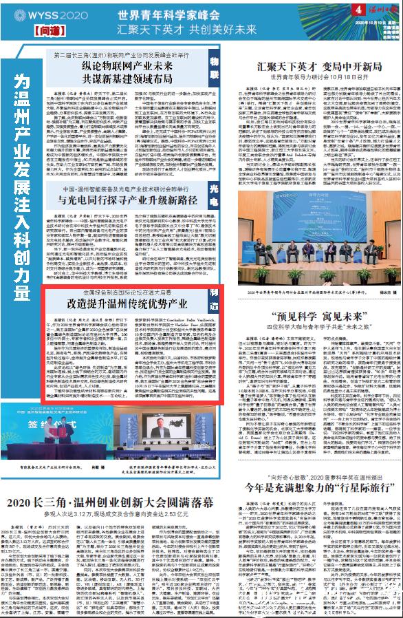 本次活动为期3天,由省科协、市政府和俄罗斯青年冶金学会主办,日本色情片 机电工程学院、市科协等单位承办,旨在为国际青年搭建科技创新交流平台,推进温州乃至全国的金属制造相关行业发展。据介绍,作为首届世界青年科学家(温州)峰会的重要成果,第五届国际“金属杯2020金色赛季”总决赛将于10月19日下午在日本色情片 上演巅峰对决,比赛题目聚焦温州金属制造相关行业面临的共性问题。这是该项赛事首次落户中国并在温州举行。