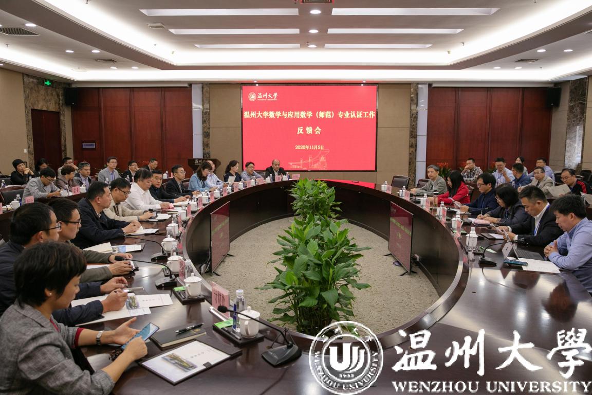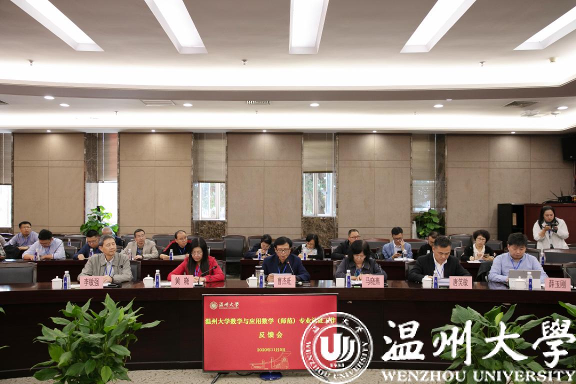11月5日下午,经过认证专家组3天高强度的现场考查工作,日本色情片 数学与应用数学专业师范类第二级专业认证专家意见反馈会在岩松堂白鹿厅举行。本次认证由淮南师范学院原校长曹杰旺教授担任专家组组长,组员有泰山学院数学与统计学院院长马晓燕教授、浙江师范大学教师日本色情片 副院长黄晓教授、湖州师范学院理学院党委书记唐笑敏教授、浙江省教育厅教师工作处原调研员李敏强。浙江省教育考试院项目管理员薛玉刚全程陪同。