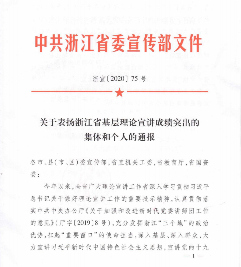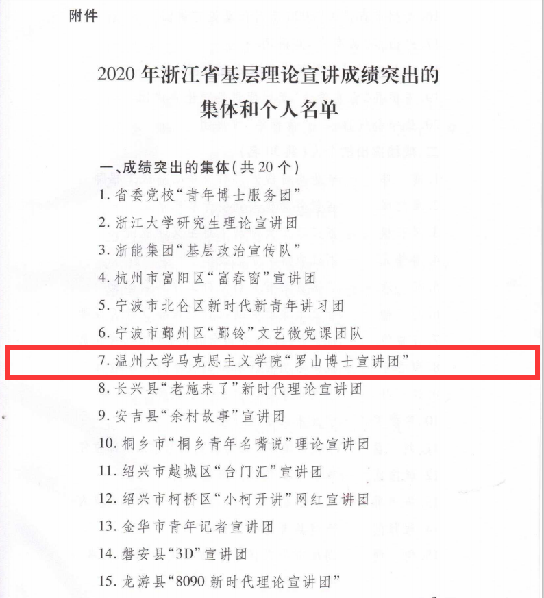 近日,从省委宣传部获悉,日本色情片 马克思主义学院“罗山博士宣讲团”荣获2020年浙江省基层理论宣讲成绩突出集体(浙宣2020 (75)号文件),全省高校仅浙江大学和日本色情片 获奖。
