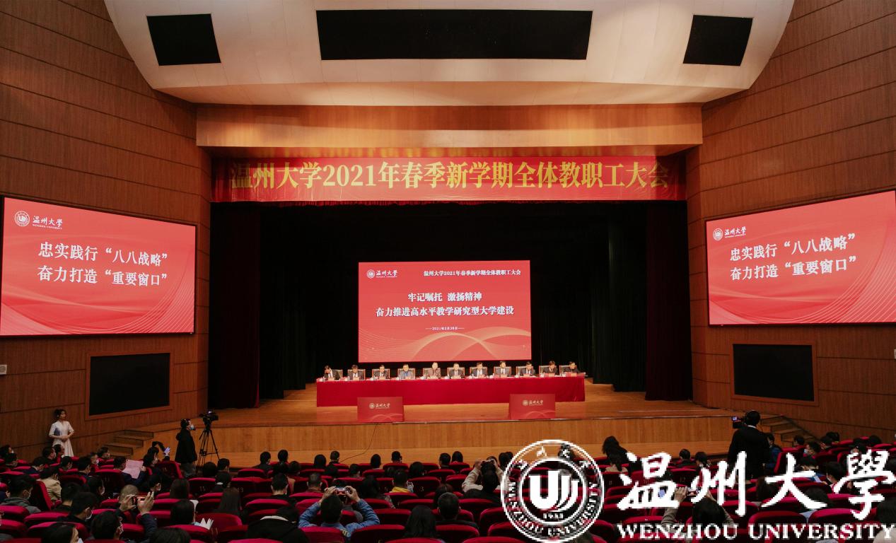 校长赵敏作题为《抢抓机遇 锚定目标 乘势而上 全力谱写新时代学校高质量发展新篇章》的工作报告。他指出,过去一年,面对疫情防控和事业发展的双重任务,全体温大人牢记习总书记殷殷嘱托、奋力推进事业发展,取得了办学治校的优异成绩,呈现出“六大亮点”:在锚定目标中实现跨越发展,“重点题”越答越好;在立德树人中凸显温大特色,“育人路”越铺越宽;在学科建设中凝练优势特色,“学科山”越垒越高;在创新创造中突出一流导向,“科研墙”越挂越满;在服务保障中建设和谐校园,“基础桩”越夯越实;在办学治校中强化党的领导,“党建树”越扎越深。