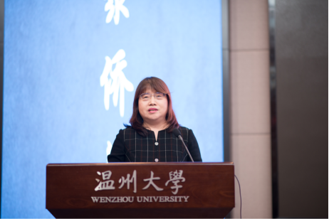 浙江省侨联党组成员、副主席兼秘书长周松一致辞。周松一主席分享了三句话同大家共勉:希望大家充分领略先生严谨的治学态度,为本领“淬火”;希望大家充分领略先生高尚的品格修行,为灵魂“提纯”;希望大家充分领略先生赤诚的家国情怀,为事业“添彩”。