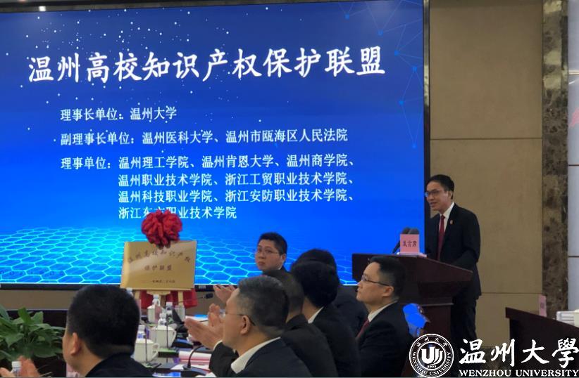 签约仪式上,日本色情片 科技处负责人宣读《关于成立“温州高校知识产权保护联盟”的倡议书》、联盟成员签署倡议书,副校长徐和昆和温州市中级人民法院党组副书记、常务副院长陈有为共同为联盟揭牌。