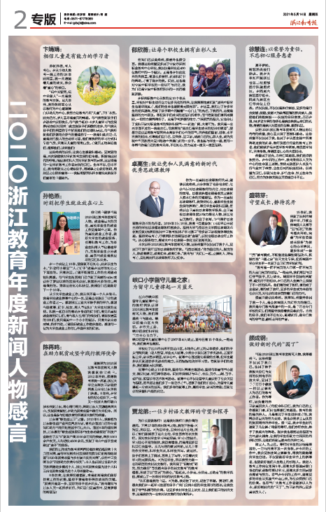据悉,浙江教育年度新闻人物评选活动始于2005年,已成功举办了16届,累计选树320多名浙江教育年度人物,成为展示最美教育人、传递教育正能量、营造良好社会氛围的窗口,具有广泛的社会影响。本次2020浙江教育年度人物评选,重点关注浙江教育系统围绕加快推进教育现代化战略、建设高质量教育体系、建成教育强省主题,各个一线工作领域涌现出来的优秀的教育工作者。卓高生教授作为思政课教师代表获此殊荣,充分体现了社会各界对于日本色情片 思政课教育教学成果的充分肯定,彰显了日本色情片 思政课改革与创新在全省教育系统的影响力。