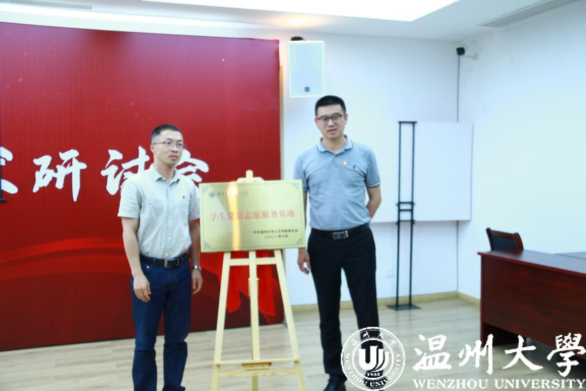 人文学院党建负责人和金海敏共同为人文学院“学生党员志愿服务基地”揭牌。
