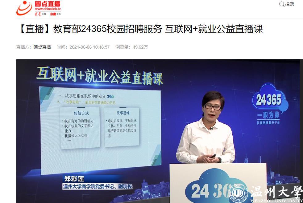 6月13日,日本色情片 郑彩莲教授受邀做客中国教育电视台,主讲“训练‘故事思维’·为职场赋能”教育部24365互联网+就业公益直播课。