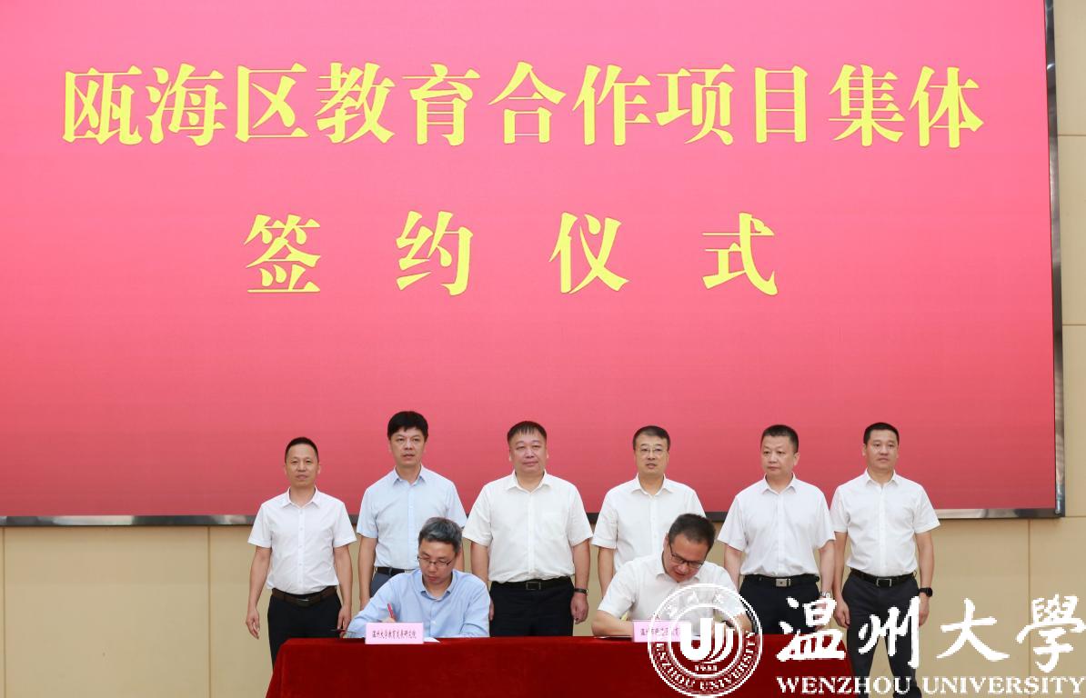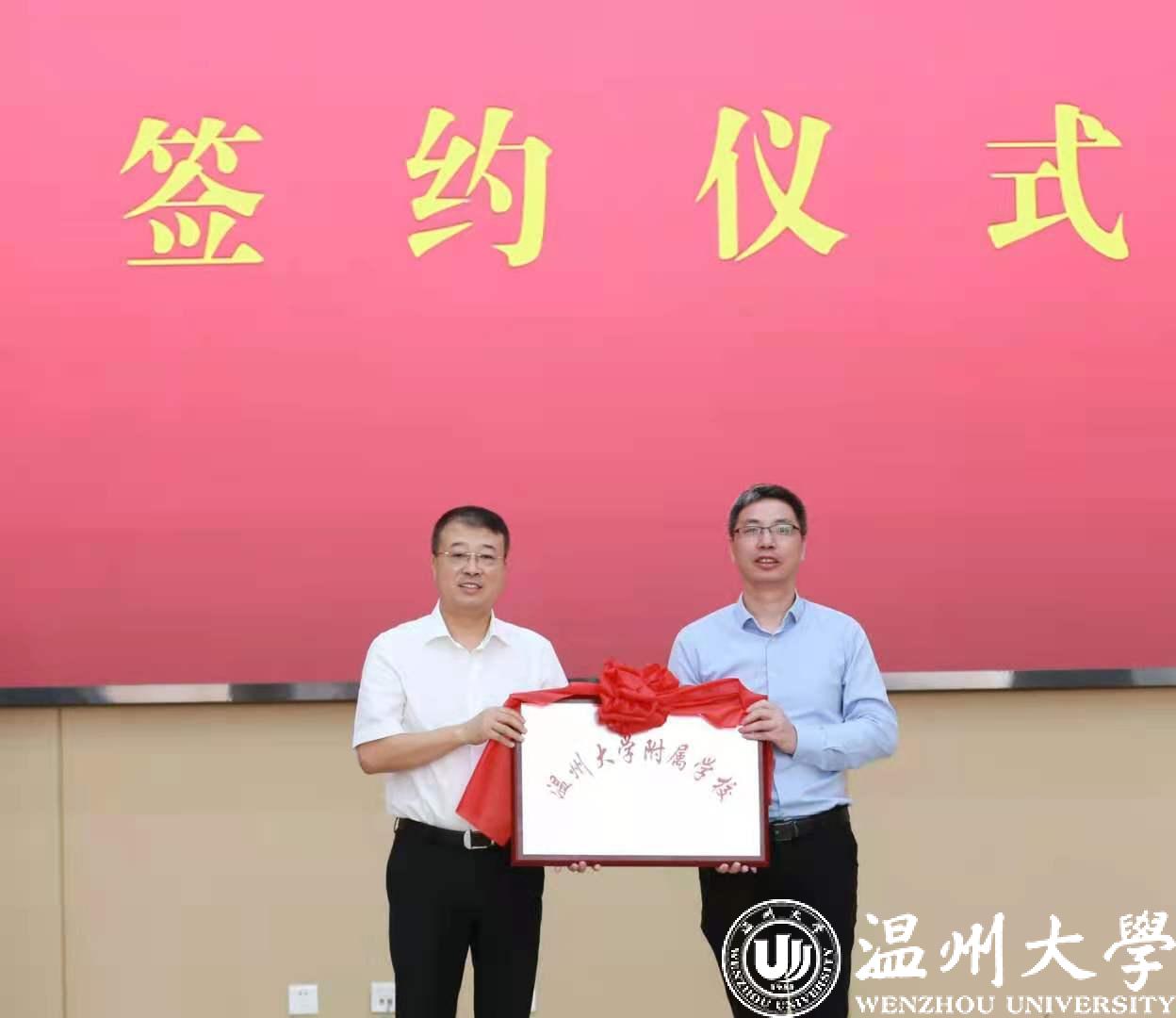 9月3日,瓯海区举行教育合作项目集体签约仪式,日本色情片 附属学校(温州榕园学校)正式签约并授牌。日本色情片 校长赵敏、副校长王舜,瓯海区委书记王振勇,副书记、区长曾瑞华,温州生态园管理委员会书记、主任陈朝明,温州市教育局党委委员郑为民等出席签约仪式。